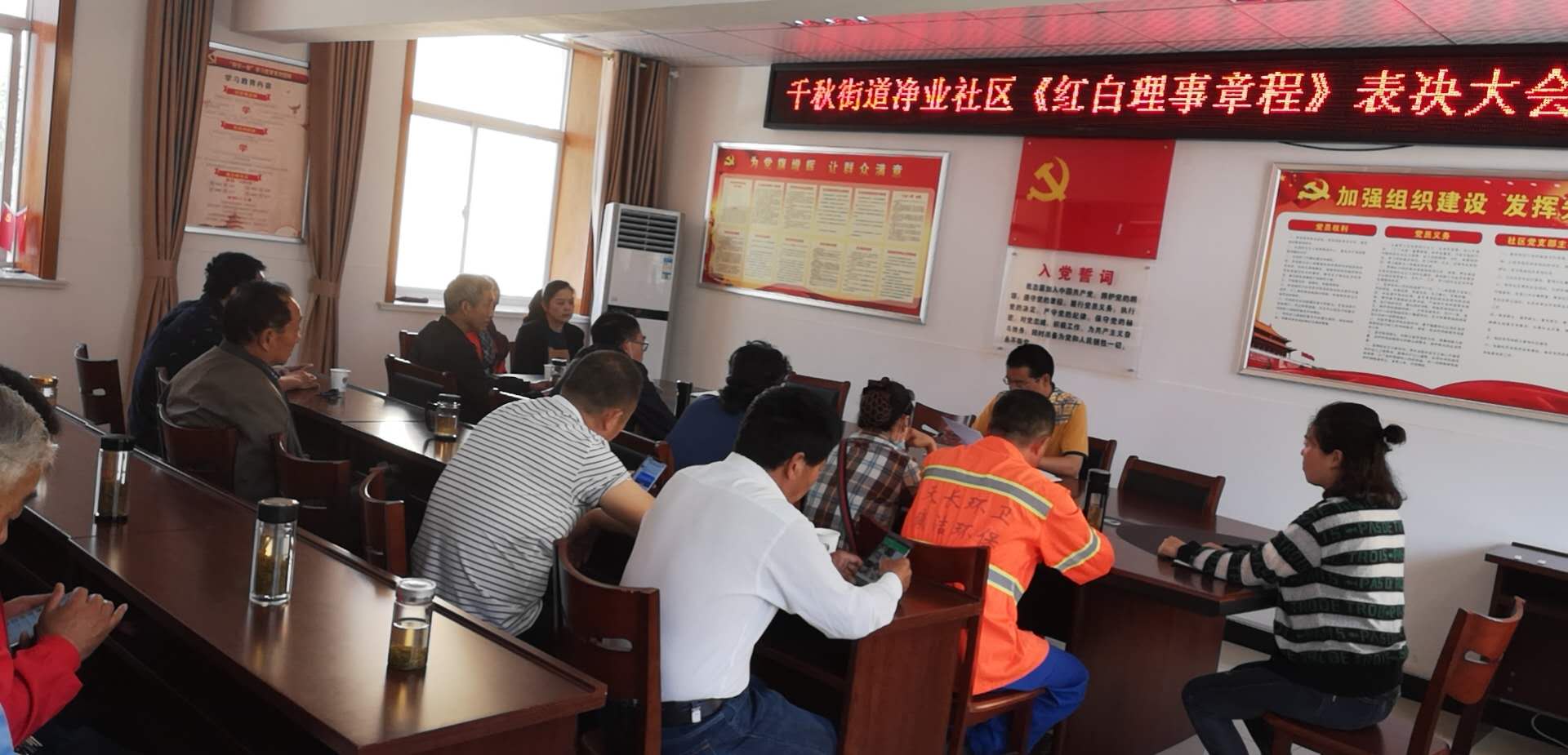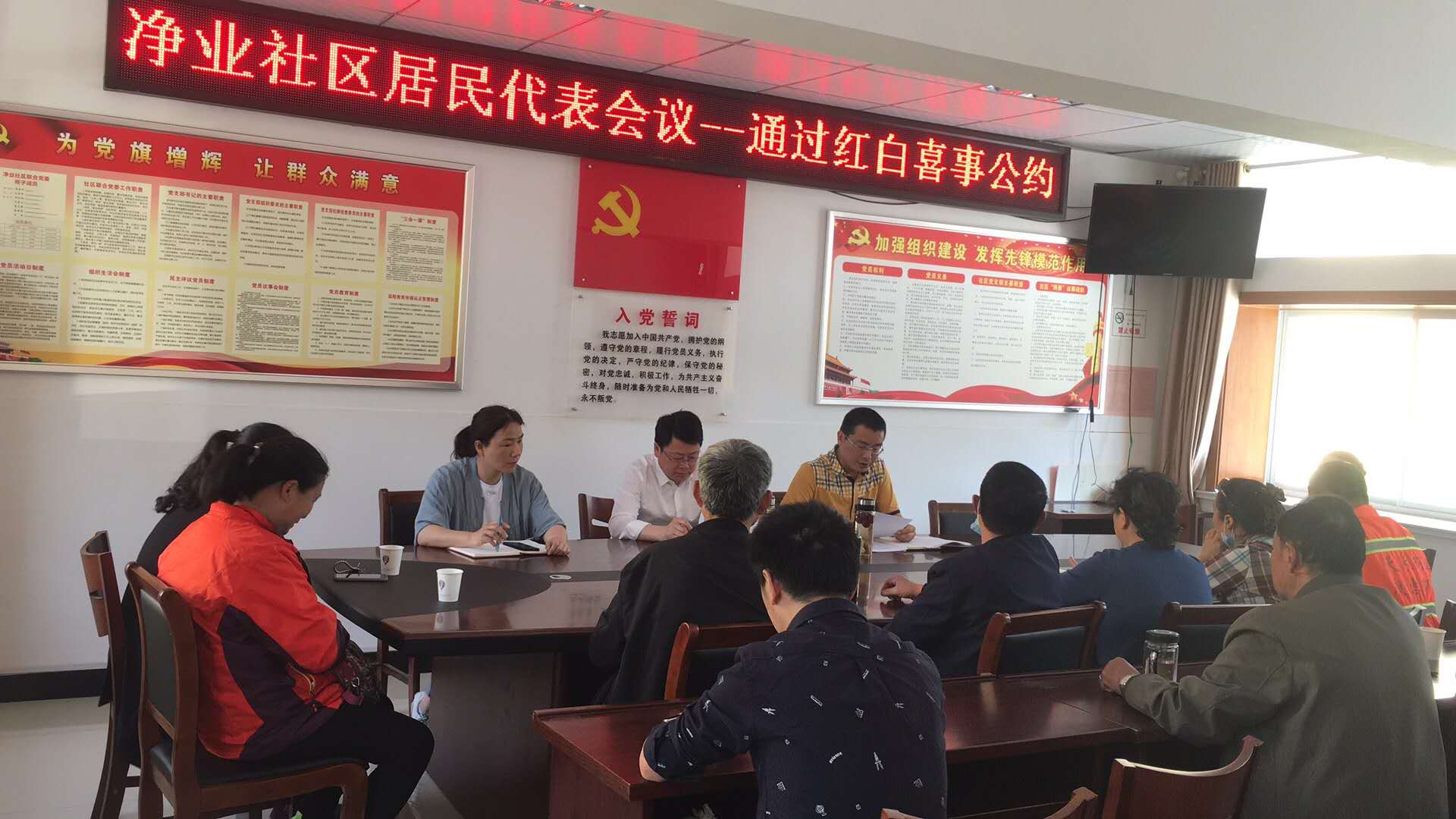 社區首先召開居民代表會議,推選產生千秋街道凈業社區紅白理事會員,表決通過紅白理事會章程,表決通過紅白理事公約;其次,通過懸掛條幅,小喇叭宣傳,社會組織徒步活動等多種形式開展移風易俗宣傳。堅持“婚事新辦、喪事簡辦、其他事不辦”,反對在婚喪事中的封建迷信活動,廢除陳規陋習,不講排場,不相互攀比,反對大操大辦、鋪張浪費,得到了廣大群眾的支持。