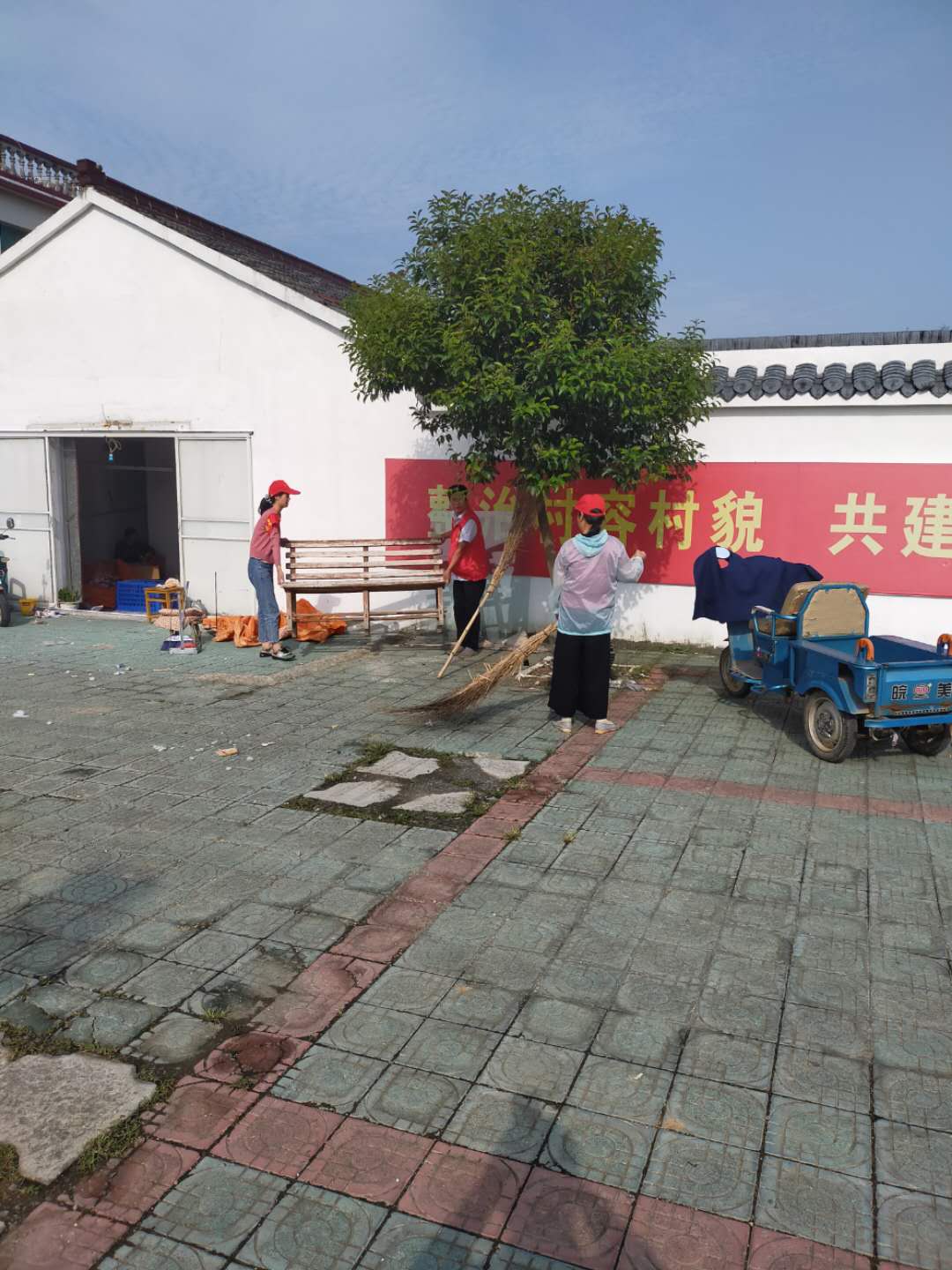 活動中,志愿者們身穿紅馬甲,手拿掃帚、鐵鍬、簸箕等工具,對草西村部周圍進行了清理。根據分工安排,有的負責清理石子,有的負責打掃,有的負責搬運,大家都很積極,個個汗流浹背,配合得相當默契,經過兩個多小時的共同努力,村部的面貌煥然一新。