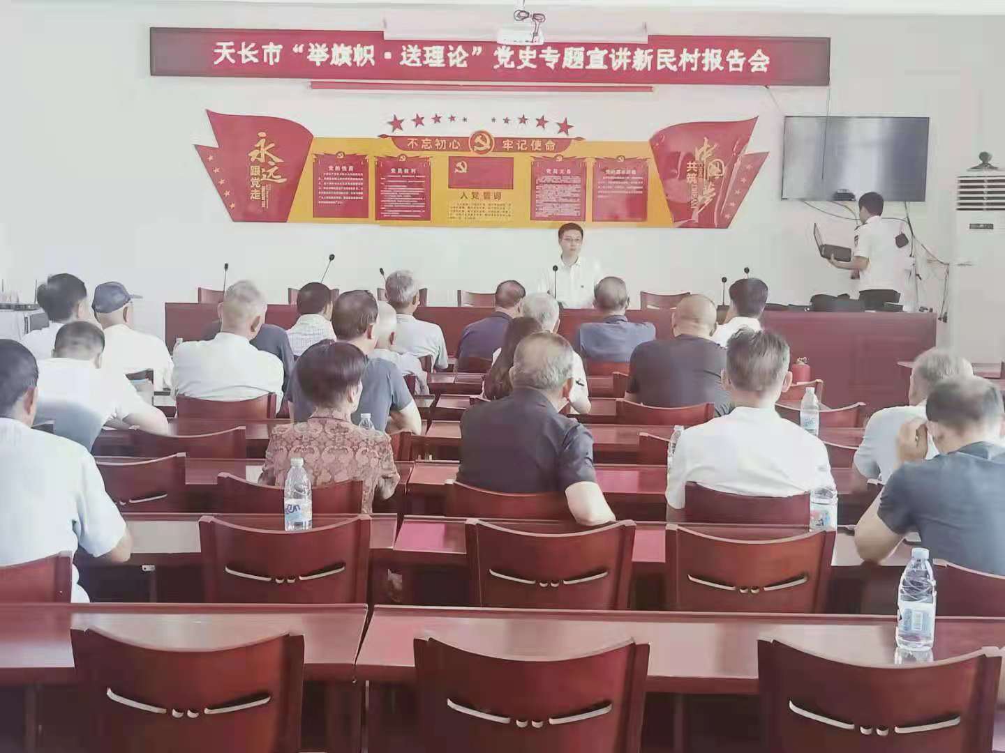 7月1日,新民村開展黨史專題宣講報告會,會上,市委宣講組成員陳功亮分別從“新民主主義革命時期”、“社會主義革命建設時期”、“改革開放和社會主義現代化建設時期”、“中國特色社會主義新時代”四個階段,講述了黨的百年輝煌史。