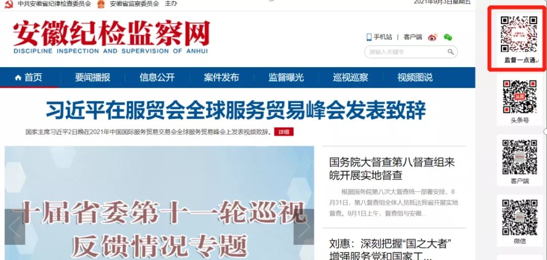 2、微信掃碼識別網站首頁右側“監督一點通”二維碼,進入服務平臺。