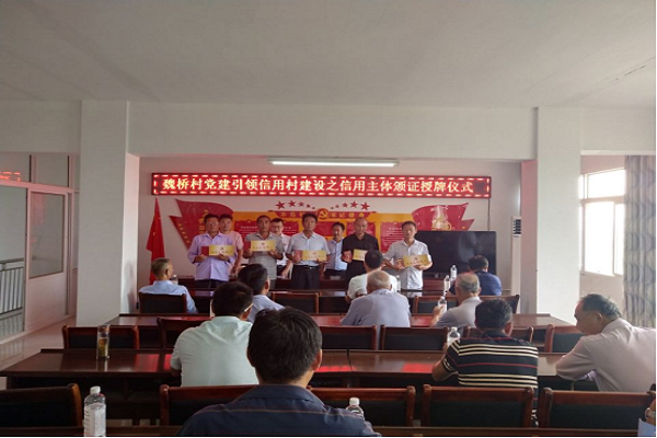 為了健全農村信用體系,解決農民農業的資金融合問題,促進農村移風易俗新風尚的發展。9月24日上午張鋪鎮魏橋村召開黨建引領信用村建設之信用主體頒證授牌儀式活動,由黨總支書記蔡萬余主持,張鋪農商行信用社金融業務指導員、村兩委成員、信用戶代表參與。