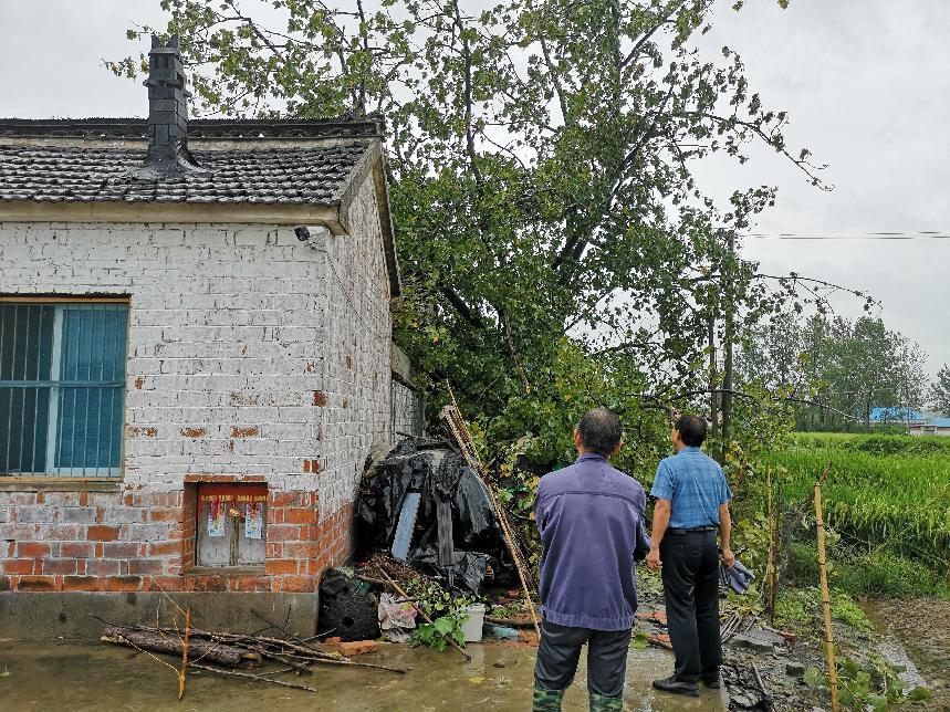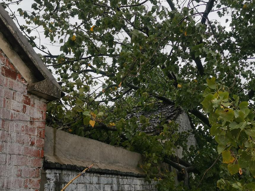 9月18日,受臺風“貝碧嘉”影響,張鋪社區一農戶屋后大樹倒伏,砸到房屋。