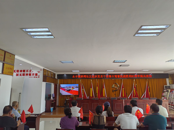 2025年9月3日上午9時,橋灣社區(qū)黨總支組織黨員干部在社區(qū)黨員活動室集中收看中國人民抗日戰(zhàn)爭暨世界反法西斯戰(zhàn)爭勝利80周年閱兵儀式直播。