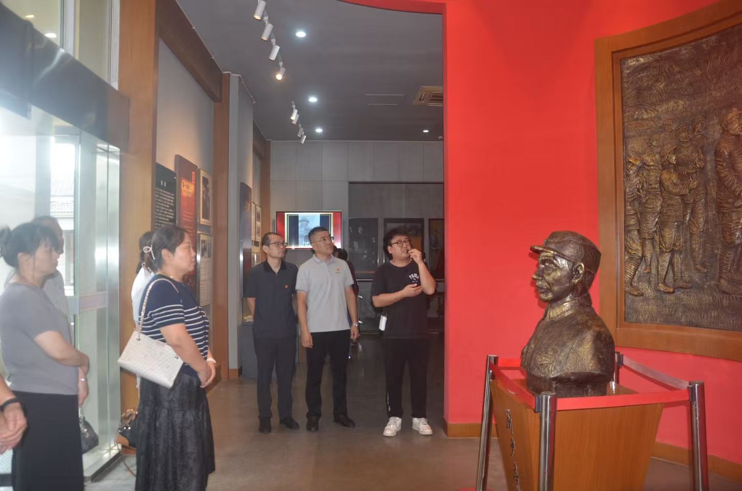 隨后,大家跟隨工作人員走進烈士紀念館。在講解員深情敘述中,一段段革命歷史徐徐展開:一幅幅珍貴圖片定格烽火歲月,一件件斑駁的實物見證堅定的信仰。黨員們沉浸其中,真切感受到在艱苦卓絕的環境中,革命先輩不屈不撓、英勇斗爭的偉大精神。
