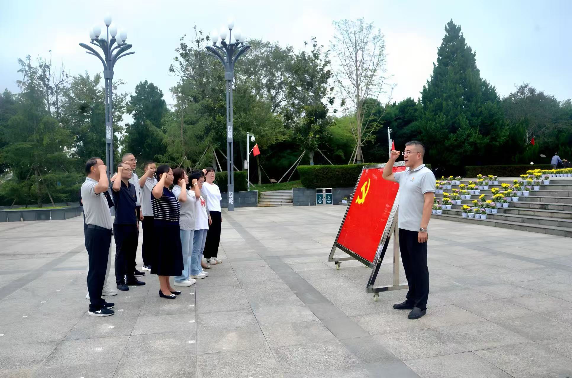 在莊嚴肅穆的氛圍中,全體黨員面向黨旗,舉起右拳,重溫入黨誓詞。鏗鏘誓言在陵園上空回蕩,傳遞出對黨的忠誠與對事業的堅定信念。這一刻,每一位黨員都更加深刻地體認到肩負的責任與使命。