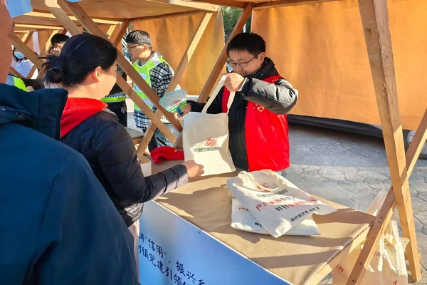 活動現場,工作人員在集市核心區域搭建印有“振興鄉村話‘振興’,黨建引領信用村宣傳活動”的宣傳臺,擺放政策解讀展板。黨員志愿者向過往村民發放印有“黨建引領信用村建設”字樣的環保袋、紙盒等宣傳小物件,這些實用的小物件上還印有信用評定流程、咨詢電話等關鍵信息,讓村民在日常使用中就能了解相關政策。