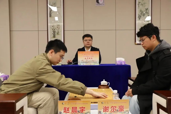 第二臺成都謝爾豪執黑對江蘇趙晨宇。趙晨宇占據優勢后牢牢把控住局面,至180手謝爾豪認輸,江蘇隊3比0鎖定勝局。